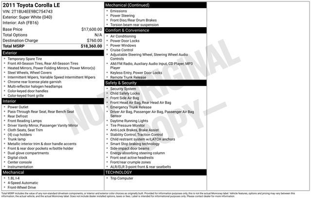 Whether you're looking for a reliable daily driver or a versatile family car, this 2011 Toyota Corolla LE is an exceptional choice. With its impressive array of features, efficient performance, and timeless design, this Corolla is sure to exceed your expectations. We invite you to visit our showroom and experience the exceptional quality and value of this remarkable vehicle for yourself.