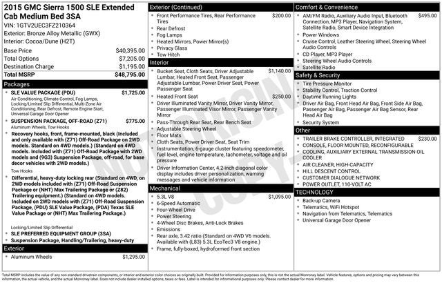 Bronze Alloy Metallic 2015 GMC Sierra 1500 SLE EcoTec3 5.3L V8 6-Speed Automatic Electronic with Overdrive 4WD