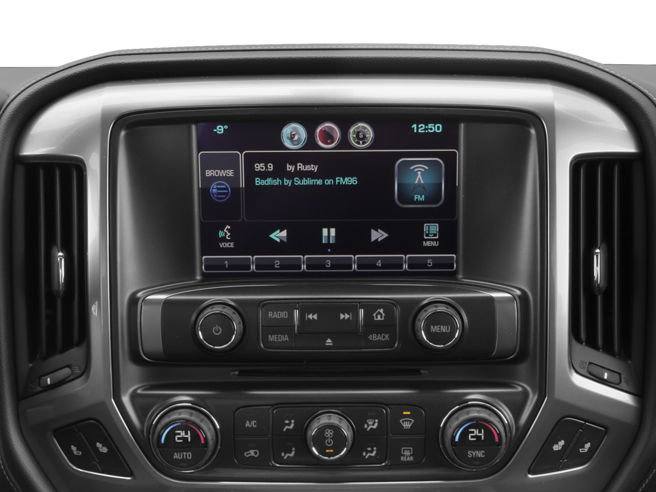 - Audio system, Chevrolet MyLink Radio with 8" diagonal color touch-screen, AM/FM stereo with seek-and-scan and digital clock, includes Bluetooth® streaming audio for music and select phones; USB ports; auxiliary jack; voice-activated technology for radio and phone. (Upgradeable to (IO6) Chevrolet MyLink 8" Diagonal Color Touch audio system with Navigation.)