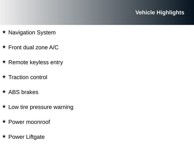 Step inside the well-appointed cabin and you'll be greeted by a wealth of premium amenities, including dual-zone automatic climate control, a premium audio system with navigation, and a power liftgate for easy access to the spacious cargo area. The leather-trimmed seats offer both comfort and style, while the power moonroof adds a touch of elegance and natural light.