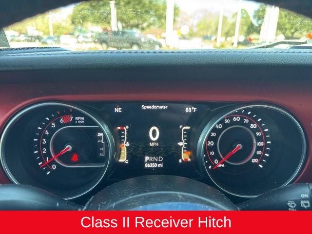 Inside, the premium leather-trimmed bucket seats and 8.4-inch touchscreen infotainment system with navigation, SiriusXM, and Apple CarPlay/Android Auto integration elevate your driving experience. The Trailer Tow & HD Electrical Group and Jeep Trail Rated Kit further enhance the Wrangler's off-road capabilities, making it the ultimate companion for your next outdoor excursion.