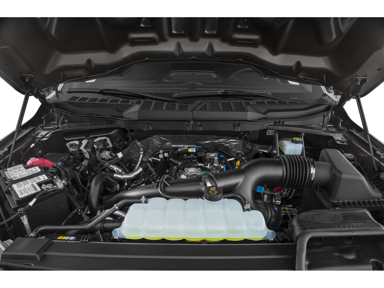Under the hood, the 5.0L V8 engine delivers impressive power and efficiency, with a 10-speed automatic transmission and 4-wheel drive for confident handling in a variety of conditions. The Auto Start-Stop technology and Flex Fuel capability further enhance the vehicle's versatility and environmental friendliness.