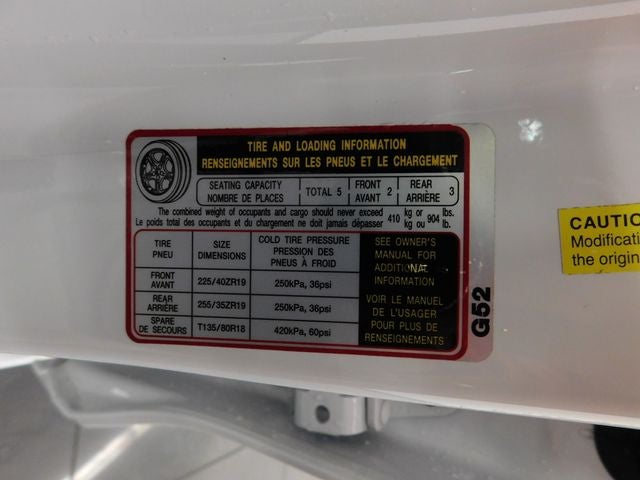 - Tires: P225/40R19 Fr & P255/35R19 Rr Summer