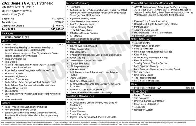 2022 Genesis G70 3.3T