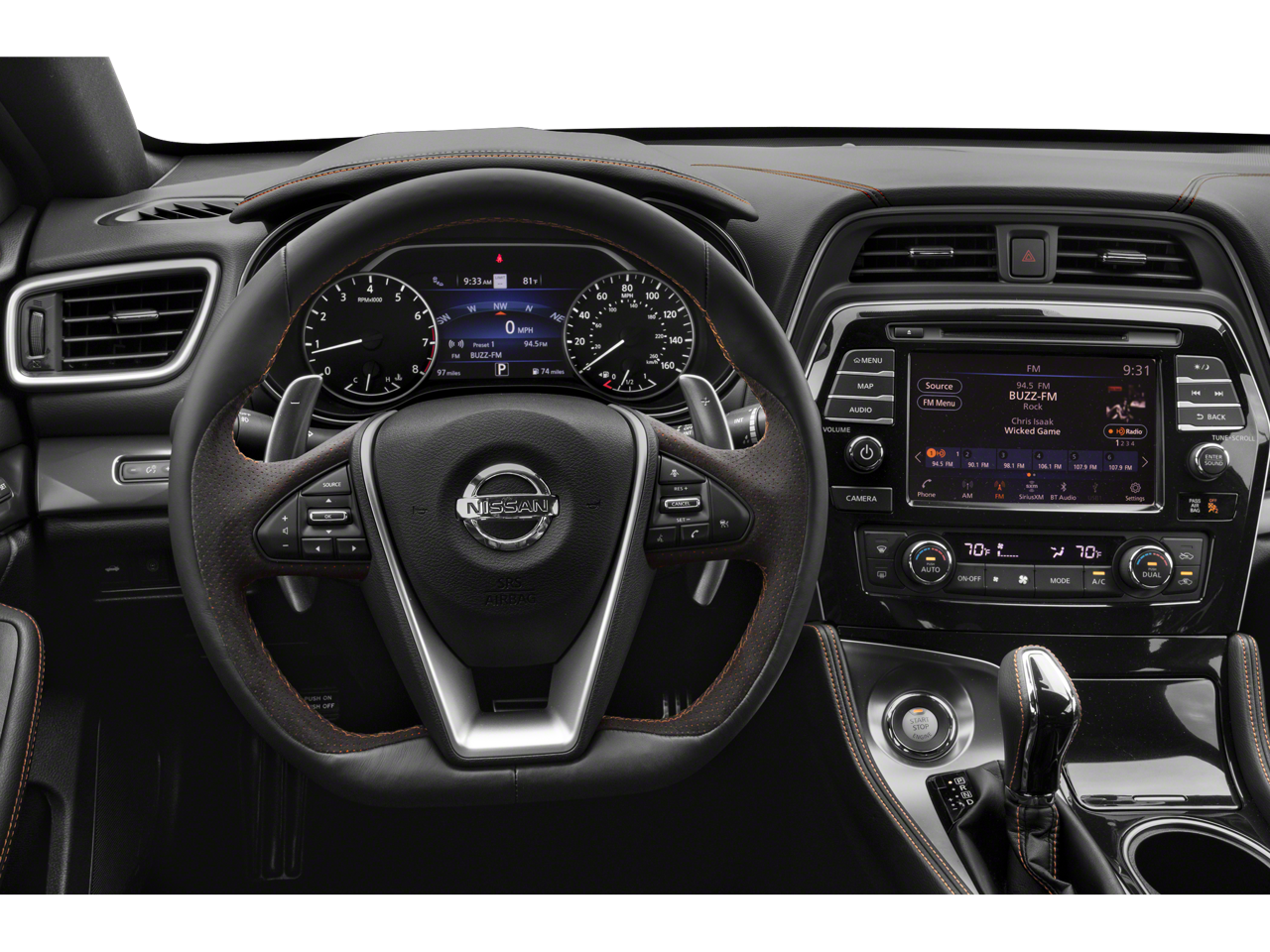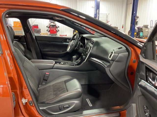 11 Speakers, 4-Wheel Disc Brakes, ABS brakes, Air Conditioning, Alloy wheels, AM/FM radio: SiriusXM, Auto High-beam Headlights, Auto-dimming door mirrors, Auto-dimming Rear-View mirror, Automatic temperature control, Bag Hooks, Blind Spot Warning, Brake assist, Bumpers: body-color, CD player, Compass, Delay-off headlights, Driver door bin, Driver vanity mirror, Dual front impact airbags, Dual front side impact airbags, Electronic Stability Control, Emergency communication system: NissanConnect Services, Exterior Parking Camera Rear, First-Aid Kit, Four wheel independent suspension, Front anti-roll bar, Front Bucket Seats, Front Center Armrest, Front dual zone A/C, Front fog lights, Front reading lights, Front Zero Gravity Climate-Controlled Seats, Fully automatic headlights, Garage door transmitter: HomeLink, Heated door mirrors, HEATED FRONT SEATS, Heated steering wheel, Illuminated entry, Knee airbag, Low tire pressure warning, Memory seat, NAVIGATION, NissanConnect featuring Apple CarPlay and Android Auto, Occupant sensing airbag, Outside temperature display, Overhead airbag, Overhead console, Panic alarm, Passenger door bin, Passenger vanity mirror, Power door mirrors, Power driver seat, Power moonroof, Power passenger seat, Power steering, Power windows, Premium Ascot Leather-Appointed Seat Trim, Radio data system, Radio: AM/FM/CD Bose Audio System, Rear anti-roll bar, Rear reading lights, Rear seat center armrest, Rear side impact airbag, Rear window defroster, Remote keyless entry, Security system, Speed control, Speed-sensing steering, Speed-Sensitive Wipers, Split folding rear seat, Spoiler, Sport Floor Mats, Sport steering wheel, Steering wheel mounted audio controls, Tachometer, Telescoping steering wheel, Tilt steering wheel, Traction control, Trip computer, Trunk Mat, Trunk Net, Turn signal indicator mirrors, Variably intermittent wipers, Ventilated front seats, Wheels: 19 Gloss Black Alloy w/Center Caps.