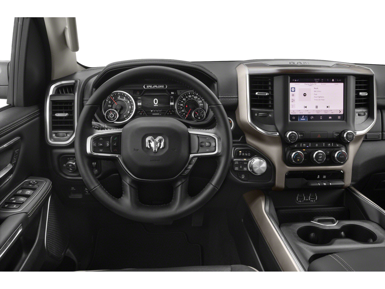 Step inside and experience the unparalleled comfort of the Laramie's luxurious interior. Sink into the plush, leather-trimmed seats and enjoy the convenience of features like the heated steering wheel, power-adjustable driver's seat with memory, and dual-zone automatic climate control. The Uconnect 5 infotainment system with an 8.4-inch touchscreen display keeps you connected and entertained on the go, while the Bose premium sound system delivers a truly immersive audio experience.