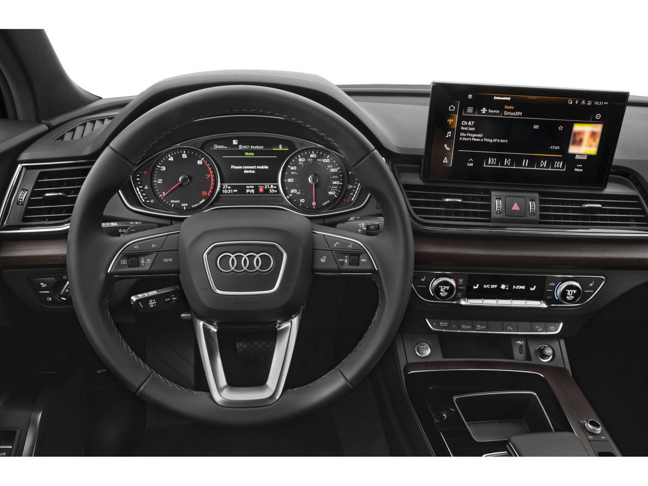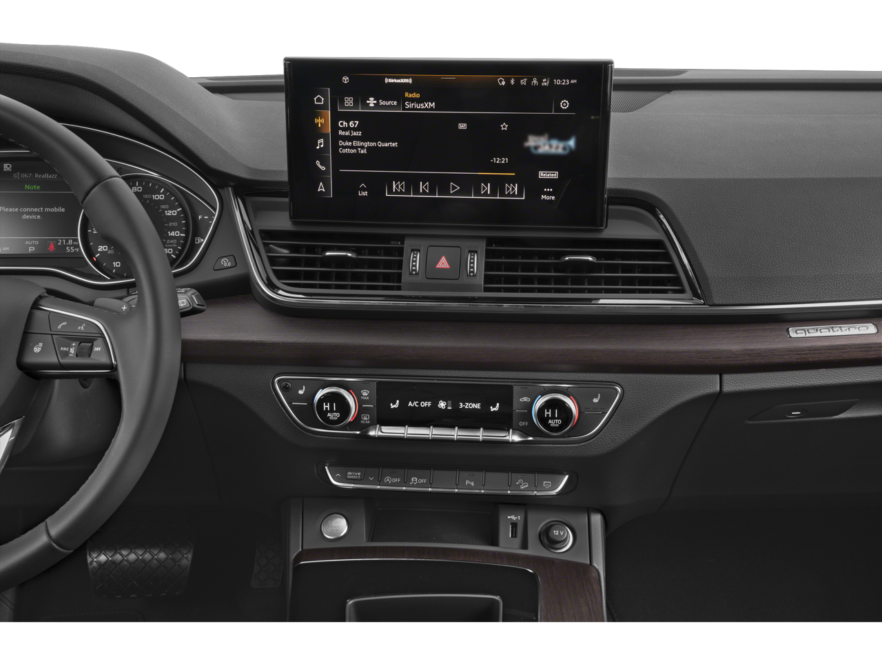 - Radio: Audi Sound System -inc: Audi smartphone interface w/wireless Apple CarPlay, preparation for mobile phone (Bluetooth®), MMI touch display w/10.1" center screen and 2 rear USB charge ports