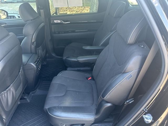 Abyss Black Pearl 2024 Hyundai Palisade Calligraphy Night Edition AWD 8-Speed Automatic with SHIFTRONIC V6 12 Speakers, 3.648 Axle Ratio, 3rd row seats: split-bench, 4-Wheel Disc Brakes, ABS brakes, Air Conditioning, Alloy wheels, AM/FM radio: SiriusXM, Apple CarPlay & Android Auto, Auto High-beam Headlights, Auto-dimming door mirrors, Auto-dimming Rear-View mirror, Auto-leveling suspension, Automatic temperature control, Brake assist, Bumpers: body-color, Compass, Delay-off headlights, Driver door bin, Driver vanity mirror, Dual front impact airbags, Dual front side impact airbags, Electronic Stability Control, Emergency communication system, Exterior Parking Camera Rear, Four wheel independent suspension, Front anti-roll bar, Front Bucket Seats, Front Center Armrest, Front dual zone A/C, Front reading lights, Fully automatic headlights, Garage door transmitter: HomeLink, harman/kardon® Speakers, Heads-Up Display, Heated & Ventilated Front Bucket Seats, Heated door mirrors, Heated front seats, Heated rear seats, Heated steering wheel, Illuminated entry, Knee airbag, Low tire pressure warning, Memory seat, Microfiber Suede Seat Trim, Navigation System, Occupant sensing airbag, Option Group 01, Outside temperature display, Overhead airbag, Overhead console, Panic alarm, Passenger door bin, Passenger vanity mirror, Power door mirrors, Power driver seat, Power Liftgate, Power moonroof, Power passenger seat, Power steering, Power windows, Radio data system, Radio: AM/FM/MP3 Premium Audio System, Rain sensing wipers, Rear air conditioning, Rear anti-roll bar, Rear audio controls, Rear reading lights, Rear side impact airbag, Rear window defroster, Rear window wiper, Reclining 3rd row seat, Remote keyless entry, Roof rack, Security system, Speed control, Speed-sensing steering, Split folding rear seat, Spoiler, Steering wheel mounted audio controls, Tachometer, Telescoping steering wheel, Tilt steering wheel, Traction control, Trip computer, Turn signal indicator mirrors, Variably intermittent wipers, Ventilated front seats, Ventilated rear seats, Wheels: 20 x 7.5J Black Liquid Paint Alloy.