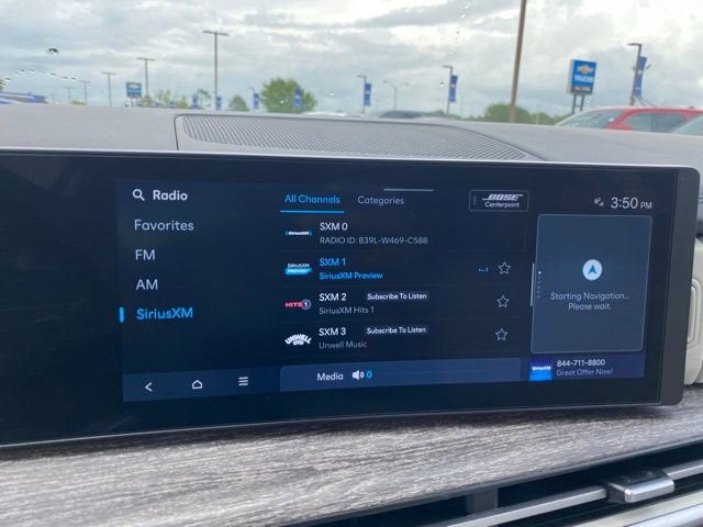 - Radio: AM/FM/HD Bose Premium Audio System -inc: 12 speakers including subwoofer, external amplifier, 12.3" wide touchscreen, Apple CarPlay and Android Auto, Bluetooth® hands-free w/wireless audio streaming, dynamic voice recognition, USB connectivity, SiriusXM, Blue Link connected car system, navigation system including traffic flow w/incident data via HD Radio (HERE) and rear seat quiet mode