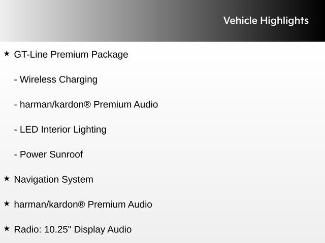 • GT-Line Premium Package with LED interior lighting, power sunroof, Harman/Kardon premium audio, and wireless charging