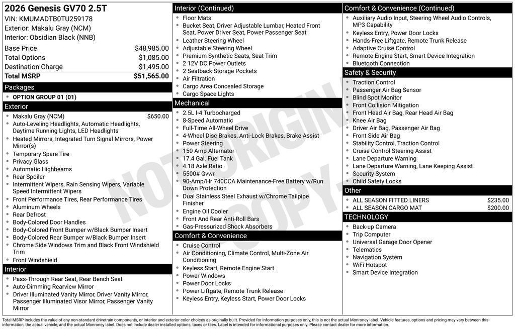 This exceptional 2026 Genesis GV70 2.5T is a true standout in the luxury SUV segment. With its captivating design, impressive performance, and comprehensive list of premium features, it's the perfect choice for the discerning driver. Experience the difference for yourself – schedule a test drive today and discover the unparalleled joy of owning this remarkable vehicle.